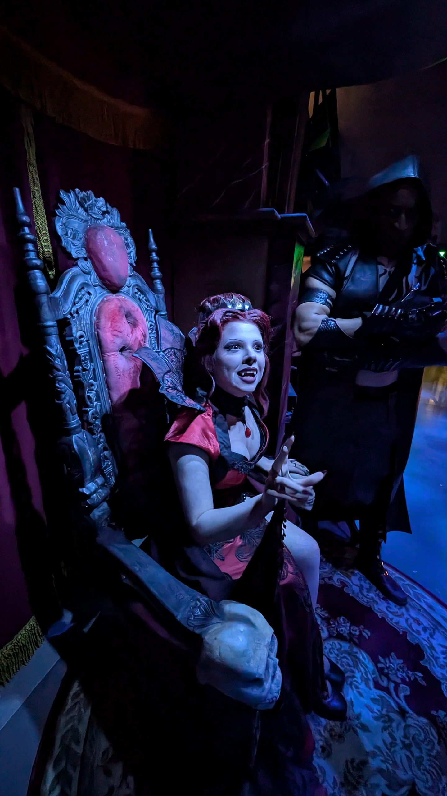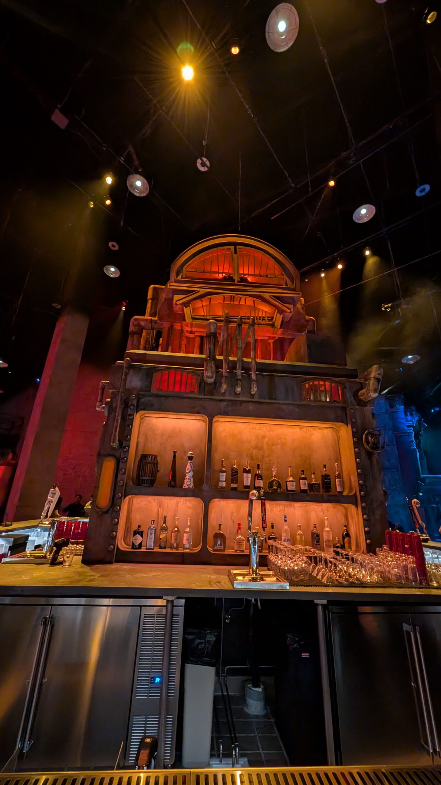 So right out of the gate, and going through security to enter Universal Horror Unleashed, we are greeted in the main warehouse of the building. Not just in name, but in terms of the “in-universe” explanation as to why this exists out there. A bit of a meta story is delivered by the cast, and then you are ushered into the first main scare zone and area to wander about. Weirdly, it is specifically one that has a vampiric court, but also weird insects roaming around, too. This all takes place in front of the Universal Monsters haunt, so it is kind of fitting and still entertaining. This is where it felt like the actors were all setting the stage as they each had their own little narrative that built into the specific haunt, but others, in terms of Horror Unleashed. Roaming about, each of the haunts except Scarecrow The Reaping had something like this. With both characters or creatures fitting for the haunt, but also some “warehouse” workers looking to seed more of the story out there and distract patrons so some of the scare actors could get a solid jump on them. An amazing tactic that I was able to sit back and watch happen many times over, as I started out peckish and looking for some liquid encouragement.