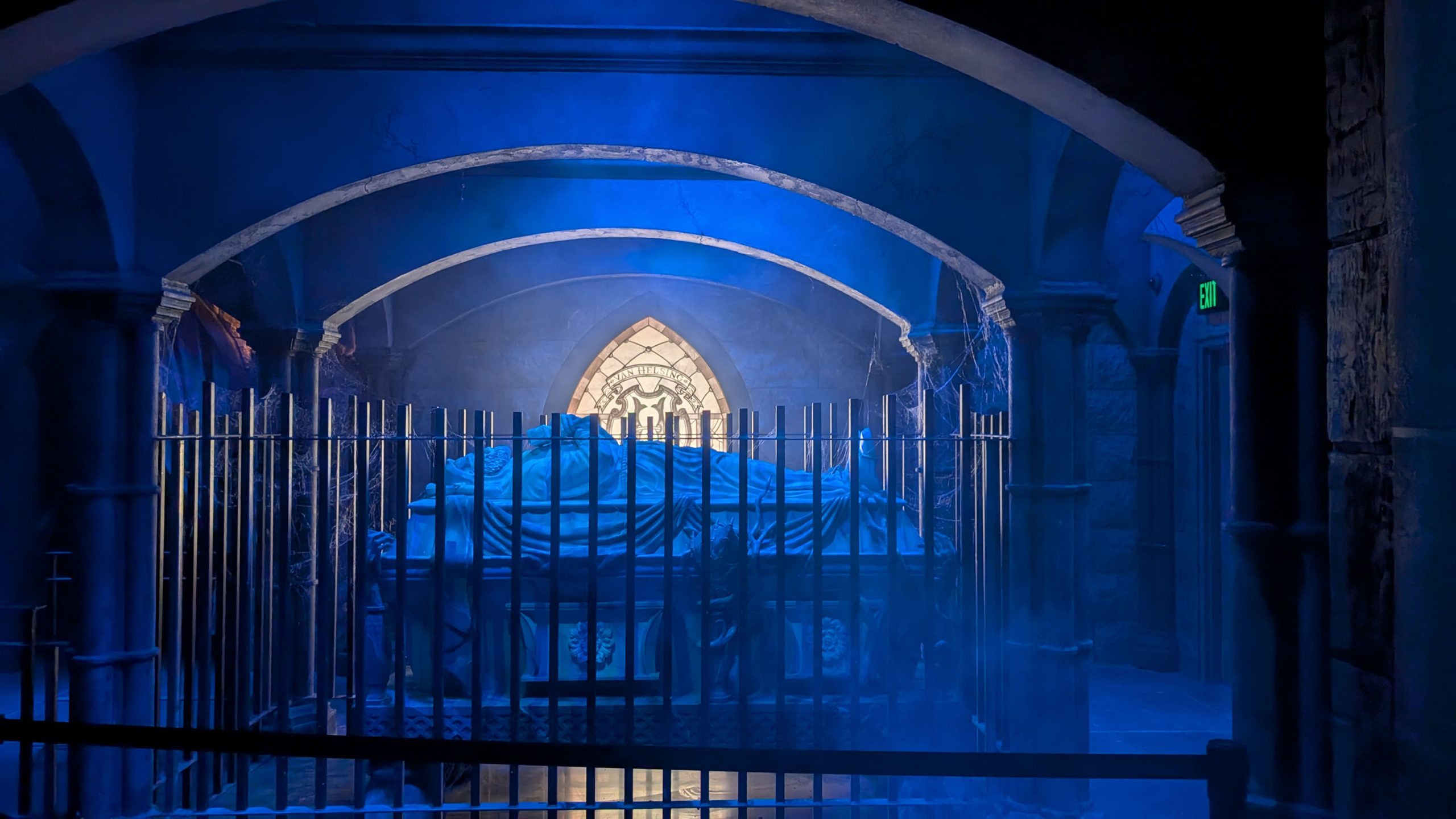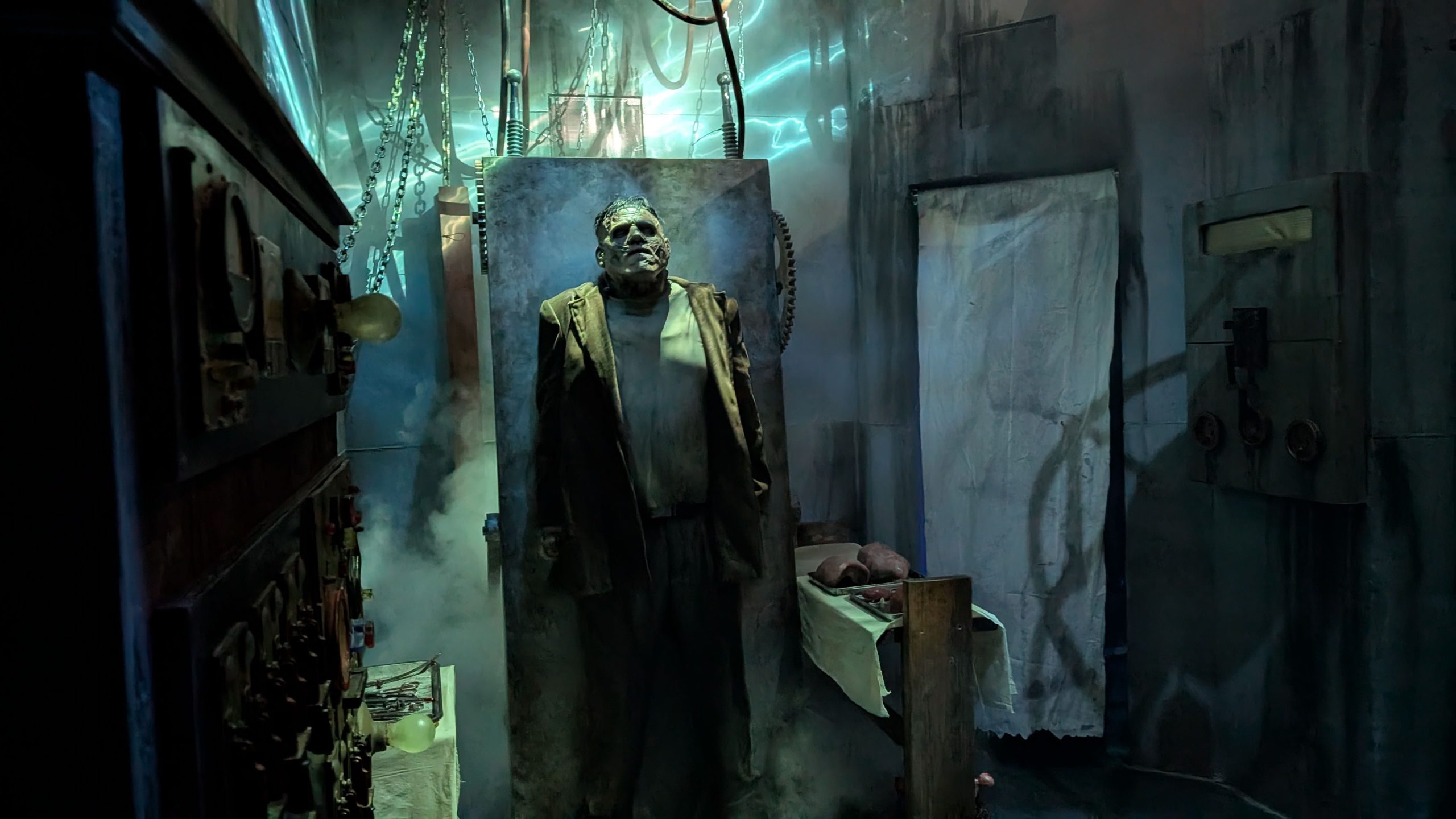 Yes, we spent a good portion of our time not going through the various haunts in Universal Horror Unleashed. Even when it felt like each of the mini-shows were put on to help draw a crowd to the attraction. Do not think that is the case, though, as it was a lot of filler. All that said, we had a chance to hit each of the haunts a few times, and you can see those walkthroughs if you wish to be spoiled. Those who do not, well, here is a quick version of it all to keep the allure. There are four different ones as of right now, with Universal Monsters, Texas Chainsaw Massacre, Exorcist Believer, and Scarecrow The Reaping making their debut. Each with some amazing theming for us all as we wait in the line. A line, that unlike Halloween Horror Nights, is actually flows to allow small groups to wander into the haunts for better scares. A solid choice as the “conga line” version usually leads to missed jumps and screams. It also allowed for Universal Horror Unleashed to perform some “featured scenes” in the haunt, where the group is stopped and a scene or event plays out, all to lead to a massive scare. All before a door opens up and ushers them out, so the next crowd can have the experience. While the actors did their best to make this work, there is the human issue they have yet to figure out with some crowds moving too fast or too slow. This is on the patrons more than the crew, but I had some of these moments ruined while going through, or I had to skip them completely as I was pushed through at a pace that made me enter just as the scene ended. Still a solid leg up for it all, but definitely some communication from higher-ups needs to happen so the actors can do the job even better.